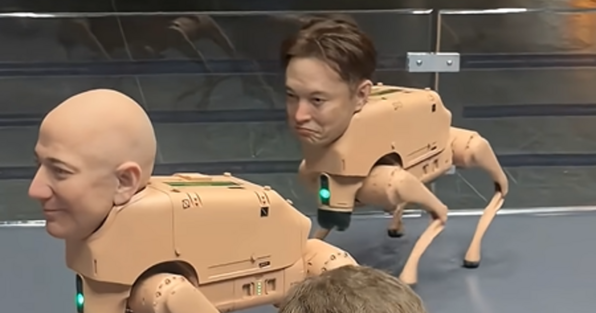 A Musk-, Bezos- és Zuckerberg-fejű robotkutyák NFT-ket kakilnak