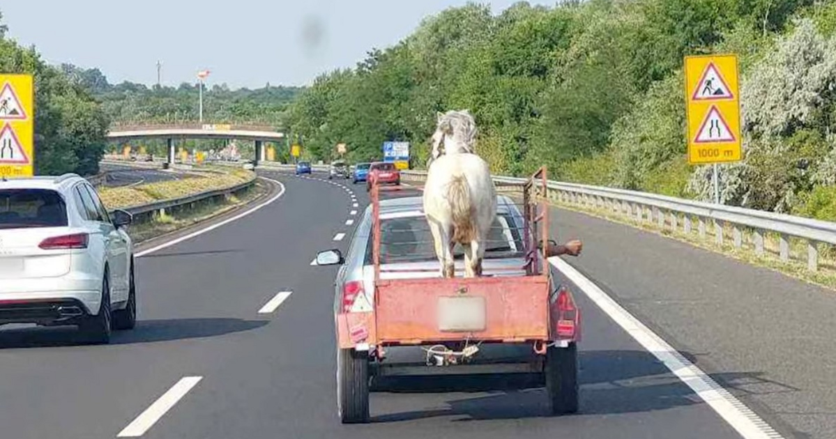 Július elején egy megdöbbentő esemény játszódott le az M7-es autópályán, amely még a közútkezelők körében is felháborodást keltett. A felvételen jól látható, ahogy valaki egy egyszerű utánfutóra állítva, bármiféle rögzítés nélkül szállított egy lovat. Az elképzelhetetlen helyzet, ahol az állat szabadon, akár egy zsák krumpli, úgy van jelen a forgalomban, komoly kockázatot jelentett nemcsak a ló, hanem a többi közlekedő számára is.
